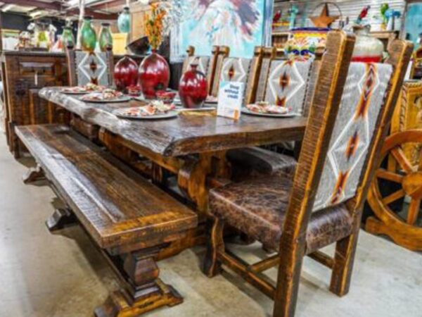 Bring the warmth and beauty of nature into your home with the Cedar Live Edge 7′ Dining Set. Order yours today!
