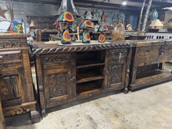 1 review for Longhorn Hand carved leather tooled and hand carved wood King bedroom set
