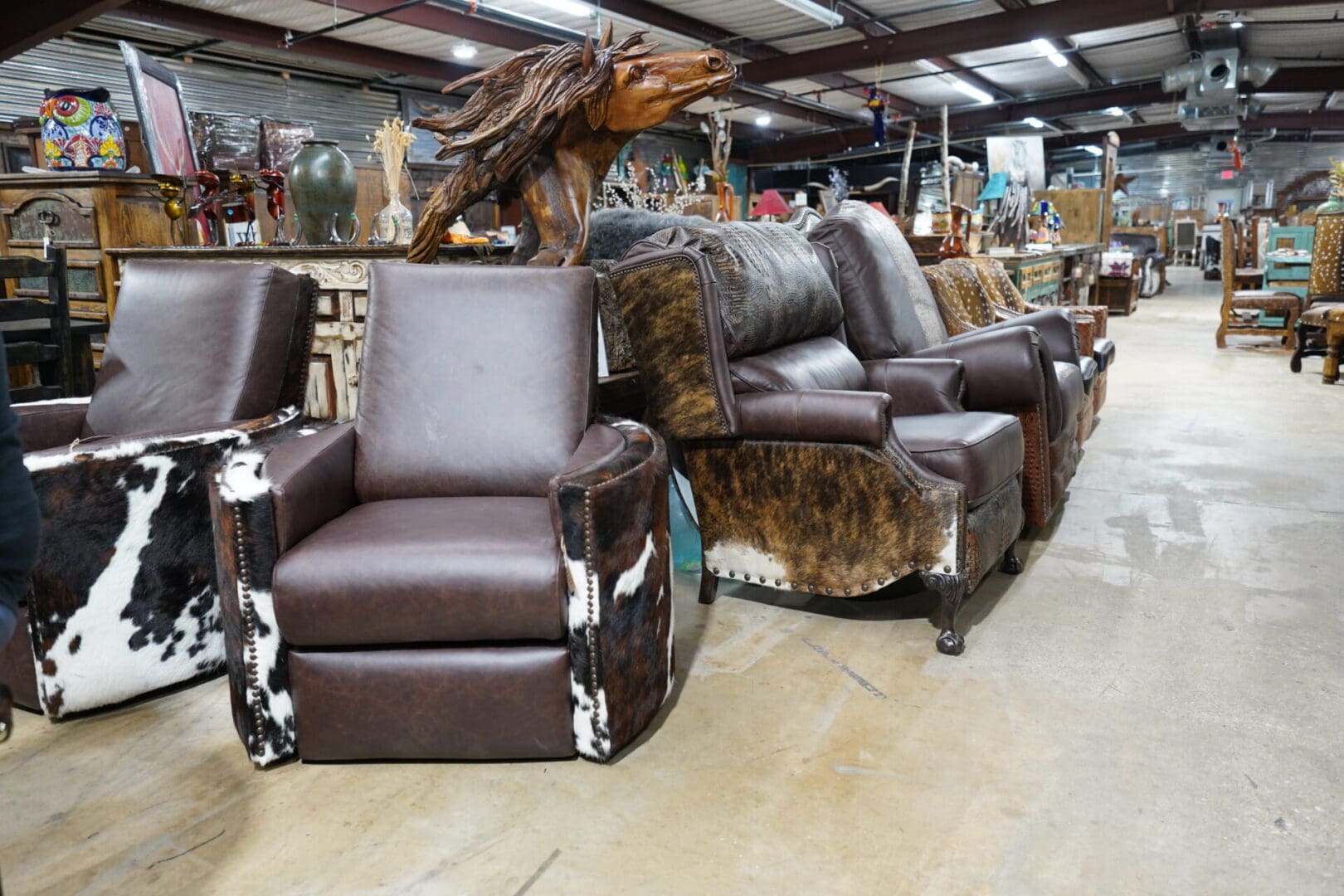 We have hundreds of options of leather swatches and authentic hides that we can select and build you a recliner similar to this from scratch.